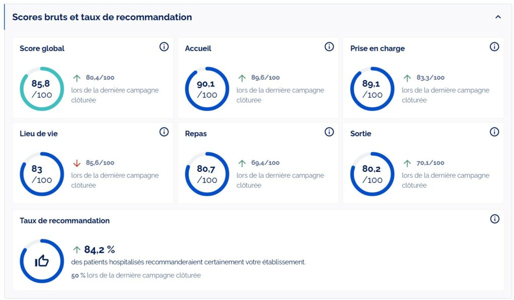 Félicitations à toutes nos équipes ! Les scores sur la prise en charge médicale et soignante ont dépassé les 85 % de satisfaction ! 👏